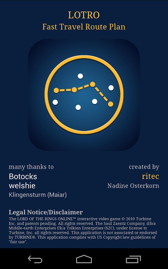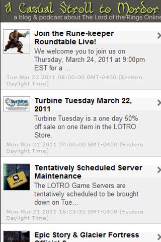 Esse é um daqueles app que você aprecia a origem e fica triste com a atualidade. Já até comentei num post passado, sobre eles agora não se dedicarem mais totalmente a LOTRO, passando assim a ser "Casually Strolling Through MMOs". Enfim... não sei se o app ainda está atrelado bem ao site deles, mas vale a pena sempre, principalmente pela história que "A Casual Stroll to Mordor" dedicou com carinho a LOTRO e a seus seguidores (vejo poucos sites que são assim atualmente).